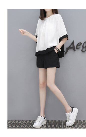セットアップ モノトーン レディース 大きいサイズ フリル 夏物 半袖 ショートパンツ カジュアル きれいめ かわいい 大人 おでかけ リラックス 上下セット 2点セット こなれ感 バイカラー