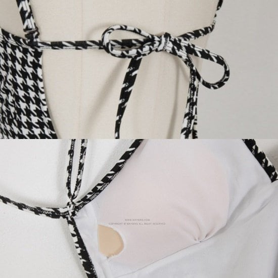 ワンピースビキニ レディース 水着 チェック柄 千鳥格子 チェック バックリボン Vカット 柄水着 夏ビーチ プール 大人 かわいい ワンピースビキニ レディース 水着 チェック柄 ギンガムチェック