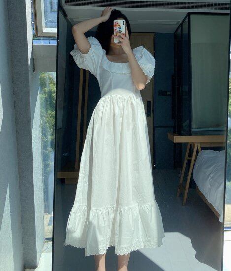 ワンピース レディース レース ティアードワンピース ホワイト フリル ガーリー 大きいサイズ 半袖 パフスリーブ かわいい ハイウエスト 無地 カジュアル ナチュラル 夏服 デート フレア