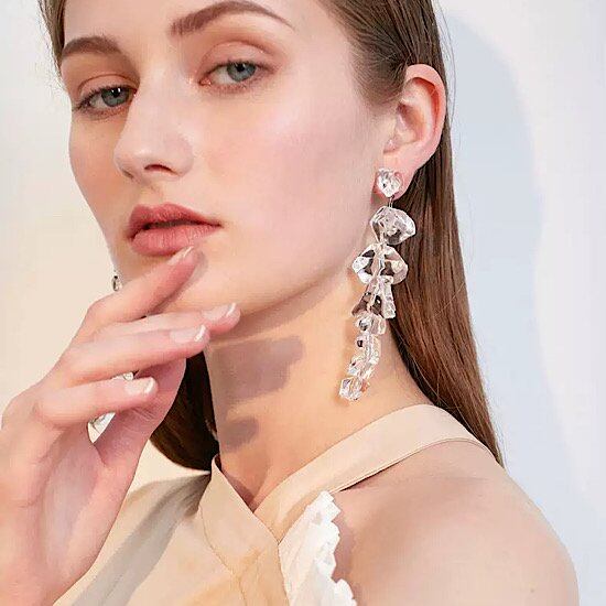 アクセサリー アシンメトリー ストーン形ピアス ファッション小物 レディース アクセント シンプル 人気 大人上品 金属アレルギー レディースアクセサリー クリスタル ロングピアス
