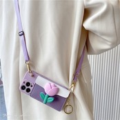 iphone ケース レディース シンプル シリコン パープル グリーン ショルダーストラップ チューリップ カード入れ Phone13 iPhone12 iPhone11 iPhone X