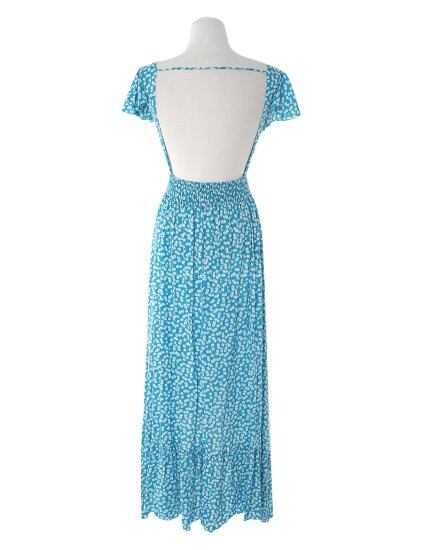 ワンピース シフォンワンピース レディース Vネック 花柄 半袖 リゾート リラックス ビーチ バックオープン フレアワンピース 大きいサイズ カジュアル かわいい 大人 デート スリット