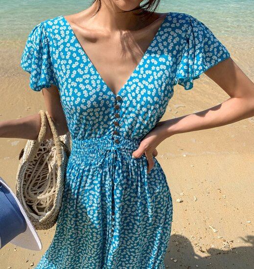 ブルーの花柄が爽やかでかわいらしい印象にみせてくれます。