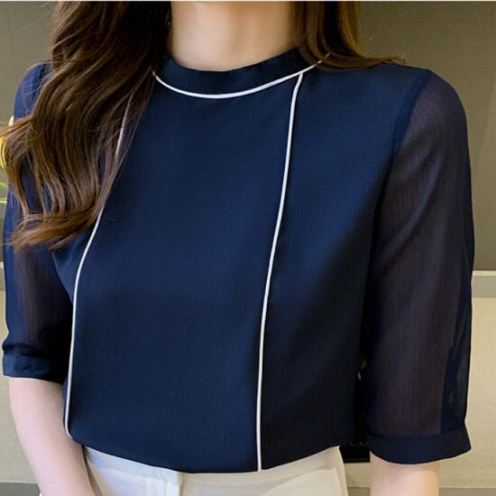 ブラウス レディース 5分袖 シフォン袖 トップス オフィス 上品 おしゃれ ライン トップス レディース ショート丈 きれいめ トップス ブラウス レディース 5分袖 上品 おしゃれ シンプル