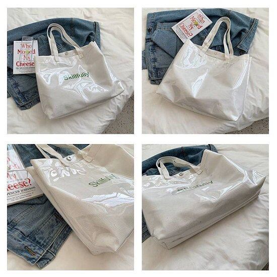 トートバッグ ショルダーバッグ レディース こなれ感 通学 大きい お出かけ ビーチ 大容量 夏 クリア おしゃれ 韓国 透明 英文字 プリント キャンバストート 大人カジュアル レジャー 軽量