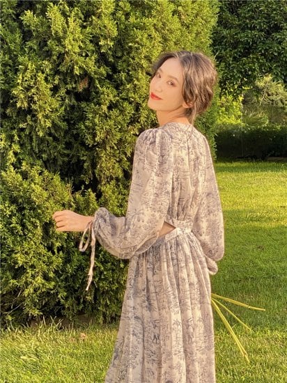 ふんわりさわやか夏らしい花柄シフォンワンピースはリゾートスタイルにぴったり。