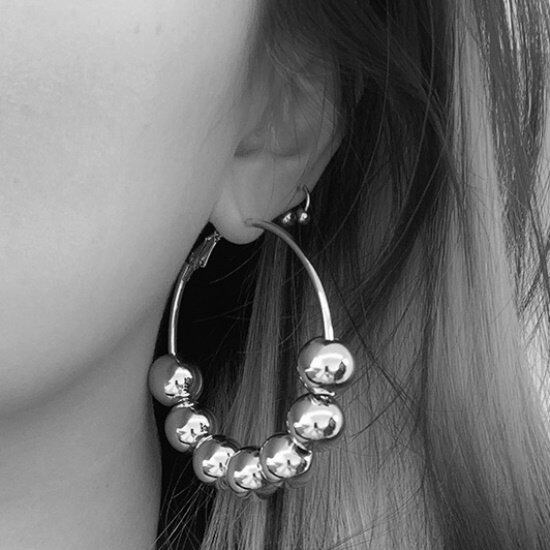 ピアス シルバー レディース 韓国 ファッション フープピアス ボール 大きめ フープピアス アクセサリー シルバー 6cm ハード ゴージャス フェミニン ファッション フープピアス ボール