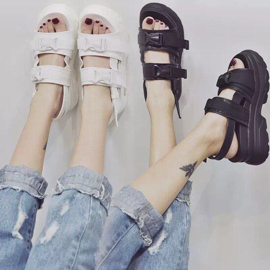 サンダル 厚底 スポーツサンダル レディース シューズ 夏 履きやすい 歩きやすい 新生活 人気 ラバーソール バックル ボリューム感 カジュアル ベーシックカラー 安定感 美脚 脚長効果