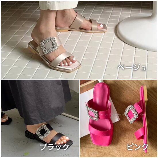 サンダル ラインストーン オープントゥ レディース シューズ 夏 履きやすい 歩きやすい 新生活 人気 ぺたんこ フラットサンダル キラキラ スクエア ビジュー ダブルストラップ