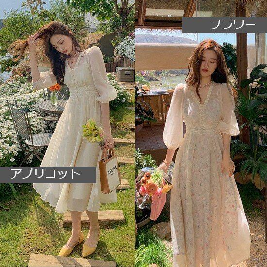 リゾートワンピース ワンピース レディース 夏 ロング丈 かわいい おしゃれ きれいめ 透け マキシワンピース デート 韓国 花柄ワンピース セット シフォンスカート Aライン ボヘミアン 五分袖