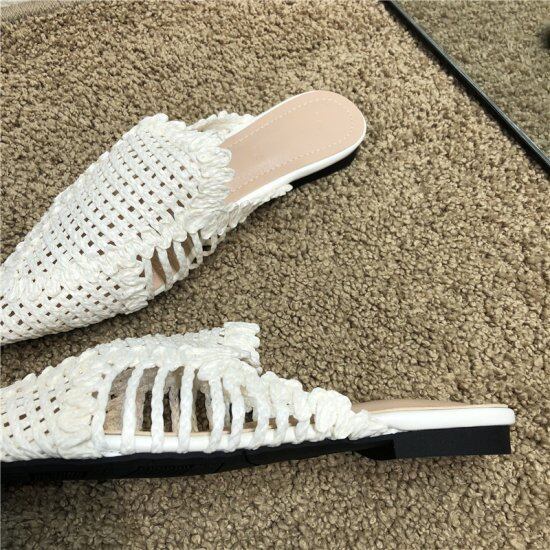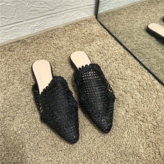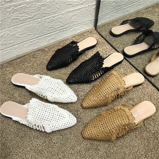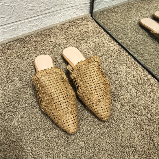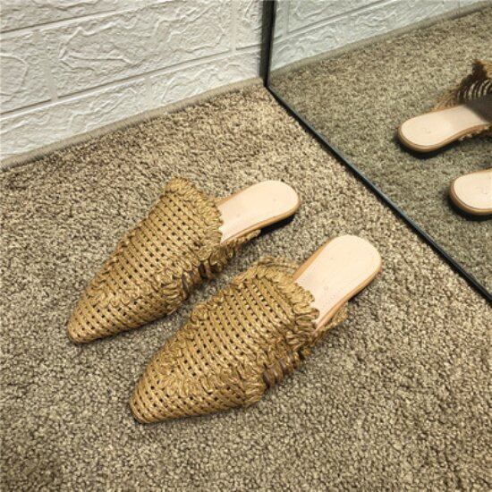 フラットシューズ ラタン調ストロー素材フラットサンダル パンプス シューズX レディース 韓国 ファッション メッシュ 夏 スライド スリッパ おしゃれ 編み ジュート ミュール フラット スリッパ