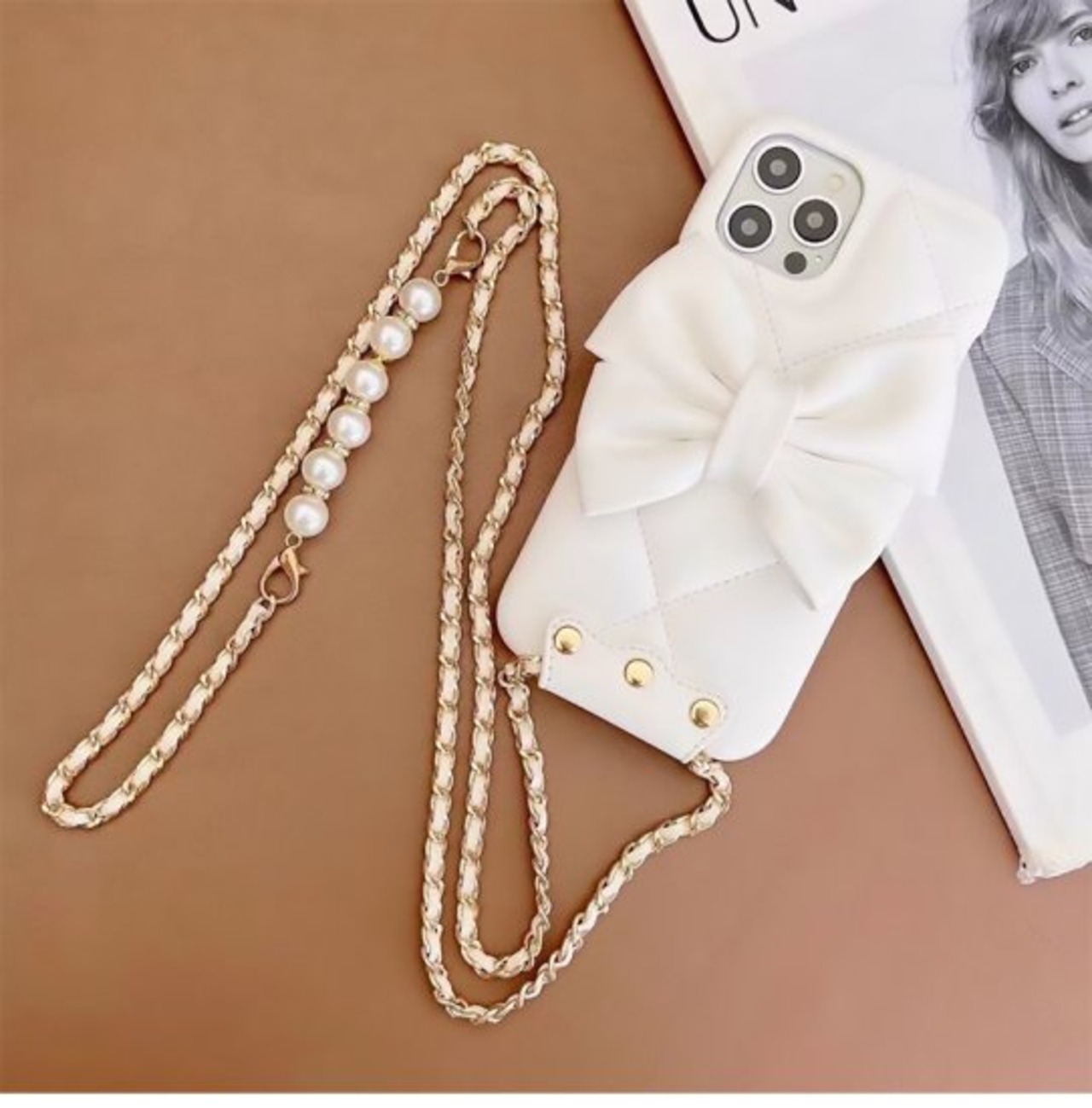 iphone ケース レディース リボン ブラック ホワイト ピンク グリーン リボン パール チェーン Phone13 iPhone13 Pro iPhone12 iPhone 12 Pro