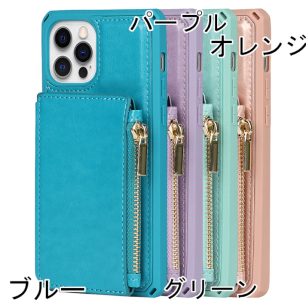 iphone ケース レディース ストラップ 小銭入れ ブルー パープル グリーン オレンジ カード入れ シンプル 無地 Phone13 iPhone12 iPhone 11 iPhone X