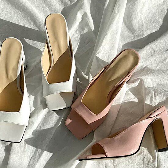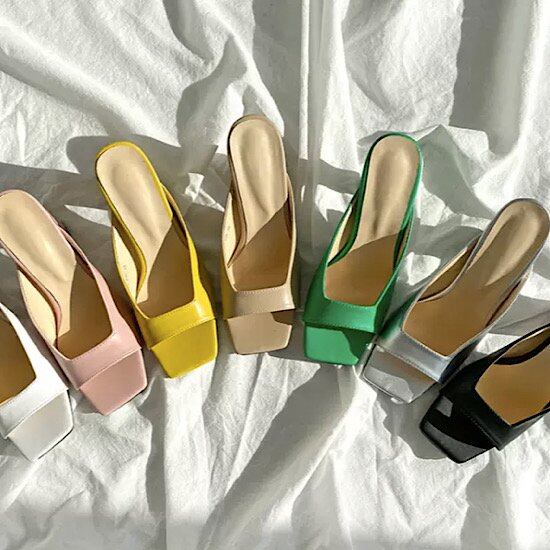 スクエアトゥが履きやすいミュールサンダル。