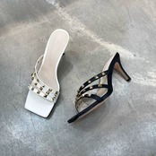細みの線ストラップにスタッズがあしらわれたクールな印象のサンダル!