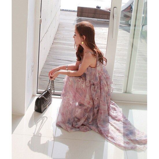 リゾートワンピース レディース キャミソールワンピ 春 夏 シフォンスカート 大人かわいい 花柄 ロング丈 マキシ丈 フリル ガーリー 大きいサイズ おしゃれ ビーチ 夏ワンピ ボヘミアン