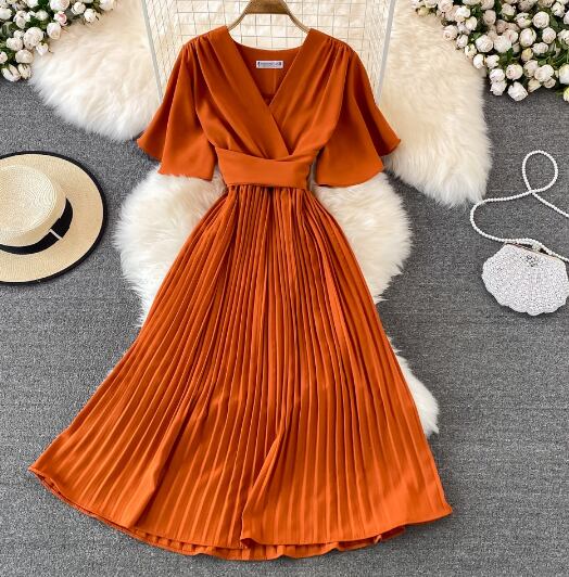 ロングワンピース レディース カシュクール カシュクールワンピース 膝丈ワンピース 半袖 ドレス Vネック プリーツ ウエストベルト お呼ばれ ハイウエスト ロングワンピース レディース カシュクール