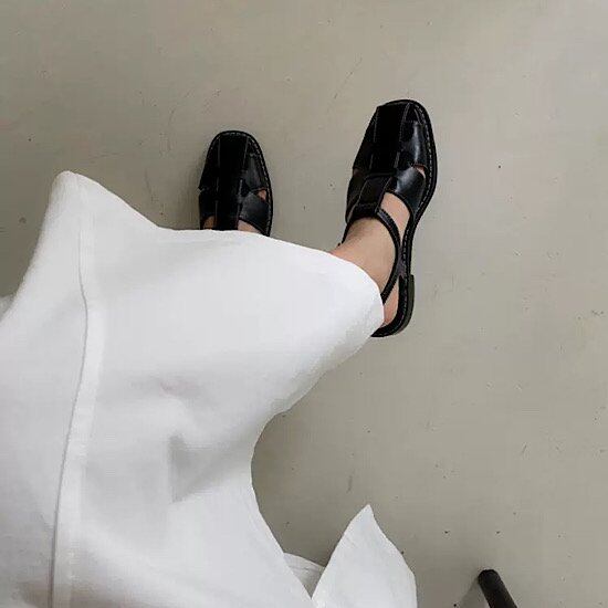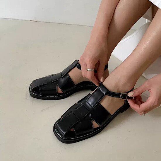 今季トレンドの甲を編み込んだベルトディテールが特徴!