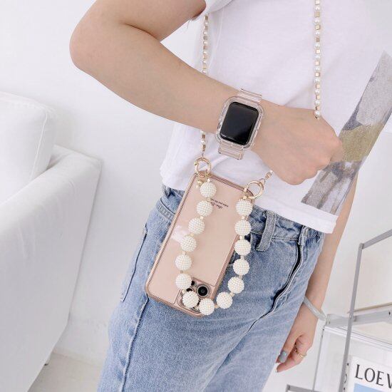 可愛らしいパールのアクセサリーがショルダーストラップに配された可愛らしいデザイン。