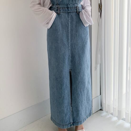 サロペット デニム レディース スカート オールインワン ロング丈 スリット サロペット ハイウエスト 体型カバー オールインワン レディース デニム スカート サロペット ロング丈 体型カバー