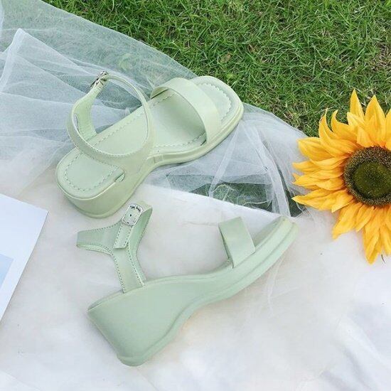 ストラップサンダル アンクルベルト レディース 韓国 ファッション 厚底サンダル 白黒グリーン 5-8cm 無地 ラバーソール スポーツサンダル ヒール ストラップサンダル アンクルベルト レディース