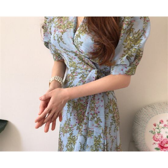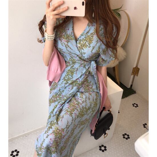 半袖ロングワンピース 大きいサイズ 半袖 Vネック ハイウエスト ロングスカート シフォン カシュクールワンピース エレガント カジュアル 夏服 レディースワンピース 体型カバー 大人可愛い お呼ばれ