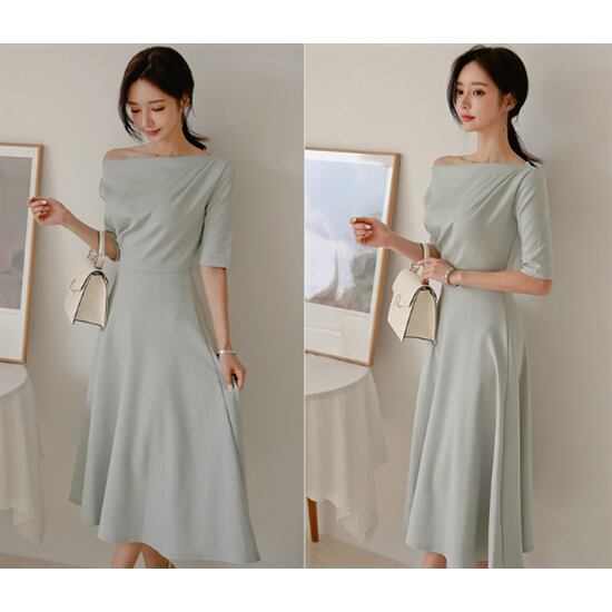半袖ロングワンピース 大きいサイズ XL 半袖 Aラインスカート ワンショルダー きれいめ フォーマル アシンメトリー エレガント お呼ばれ 無地 上品 フレアスカート レディースワンピース シンプル