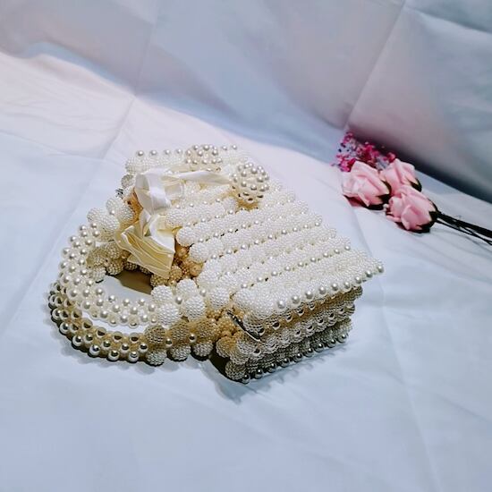 トートバッグ ビーズ パール 鞄 リボン 結婚式 華やか ミニバッグ 軽量 お出かけ 旅行 上品 白 スクエア パーティバッグ ハンドバッグ ビーズ パール 鞄 リボン 結婚式 華やか ミニバッグ