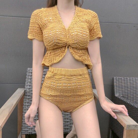 ビキニ クロシェ水着 半袖 セパレート レディース 韓国 ファッション ハイウエスト おしゃれ スイムウエア ビーチウエア Vネック 刺繍 ツーピース 水着 レディース かわいい 大人 海 プール