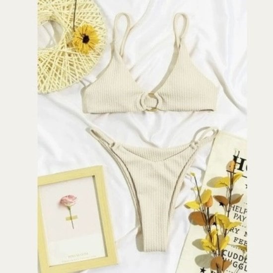 ビキニ 水着 三角ビキニ レディース 韓国 ファッション リブ素材 リングブラ セクシー ブラジリアン 夏 ビーチ プール ビキニ セパレート 三角ブラ ビキニ 水着 リゾート 無地 リブ素材 韓国