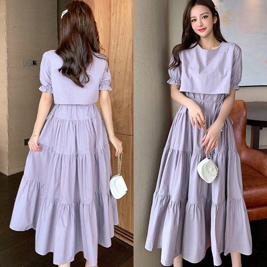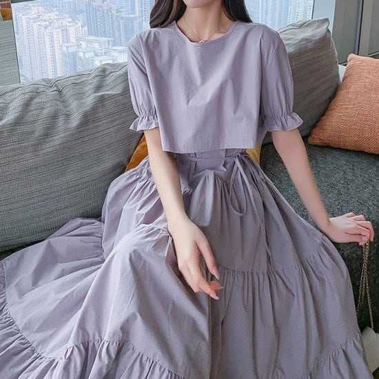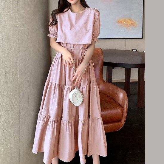 ワンピース レディース 韓国 ファッション チュールスカート ギャザーフレア Aライン ロング 夏 半袖 ウエストリボン ガーリー フェミニン ワンピース チュールスカート ギャザーフレア Aライン