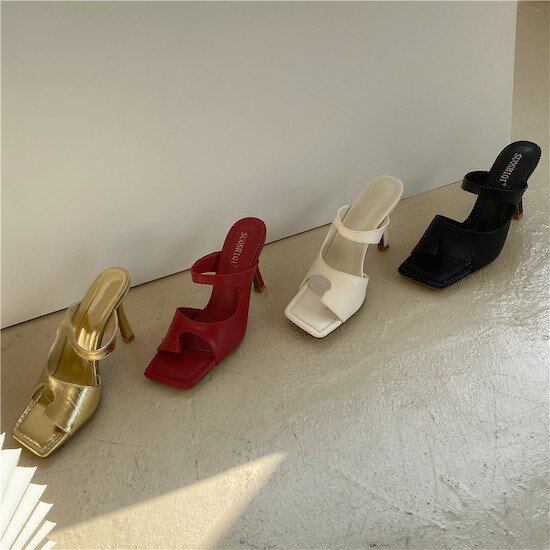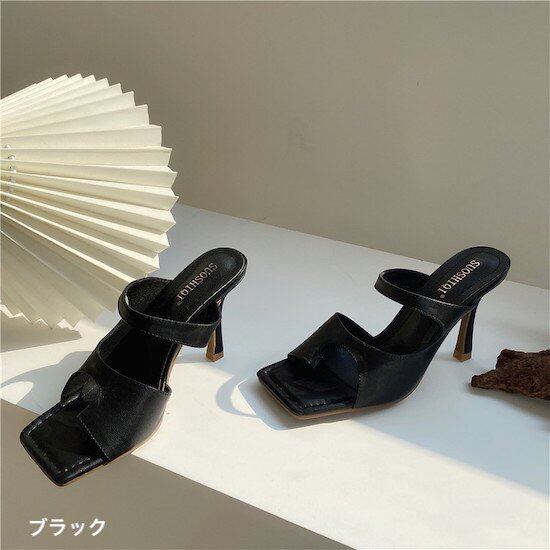 スクエアトゥサンダル レディース ユニークデザイン サンダル カットアウト ストラップ ミュール つっかけ シューズ ピンヒール 履きやすい スクエアトゥサンダル レディース ユニークデザイン
