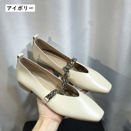 パンプス レディース ローヒール 歩きやすい パンプス レディース チェーン スクエアトゥ プレーンパンプス シンプル チェーンストラップ ゴム パンプス レディース ローヒール 歩きやすい
