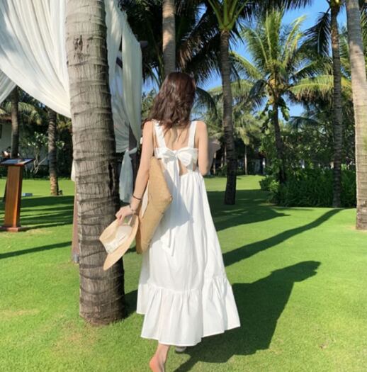 ロングワンピース レディース 夏 キャミワンピース フレアスカート Aライン バッグリボン ワンピース Aラインワンピース 夏新作 大きいサイズ 背中見せ 大人 ロングワンピース レディース 夏新作