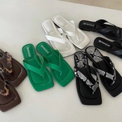 トングサンダル レディース スクエアトゥ サンダル トング ストラップ フラット ぺたんこ スリッパ つっかけ トングサンダル レディース スクエアトゥ サンダル トング ストラップ フラット