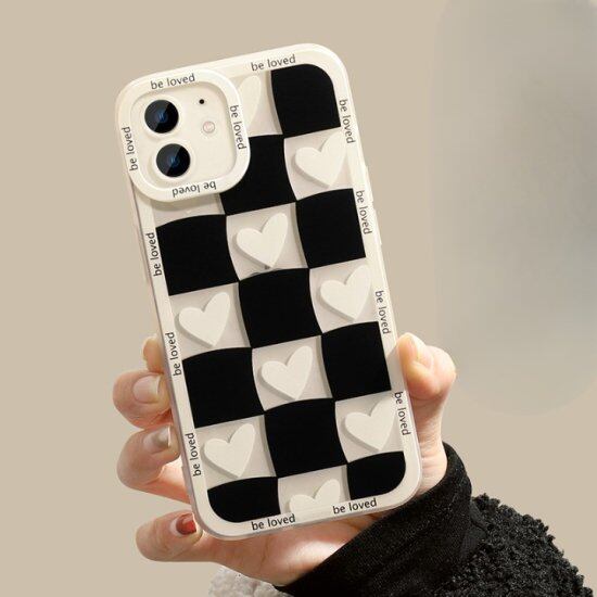 iPhoneケース レディース ブラック ホワイト シリコン チェック ハート 市松模様 iPhone 13 iPhone 12 iPhone 11 iPhone X 派手 オシャレ 大人可愛い