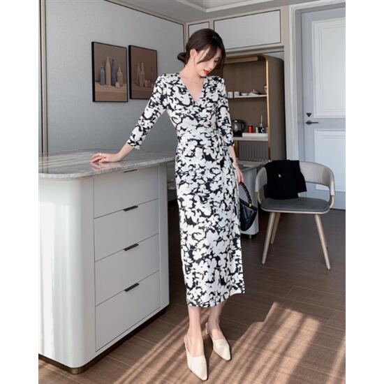 半袖ロングワンピースドレス 大きいサイズ L Vネック 花柄ワンピース Aラインスカート リゾートワンピース お呼ばれ きれいめ エレガント お洒落 ハイウエスト カシュクール ロングワンピース