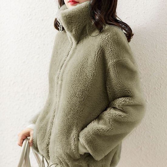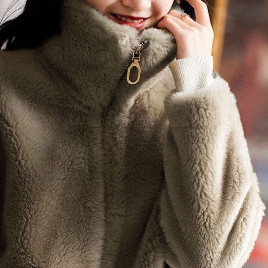 ボアブルゾン フェイクファー 長袖 ファーコート ショートコート ブルゾン ボア ショート丈 レディース アウター トップス ハイネック 無地 ボアブルゾン フェイクファー 長袖 ファーコート