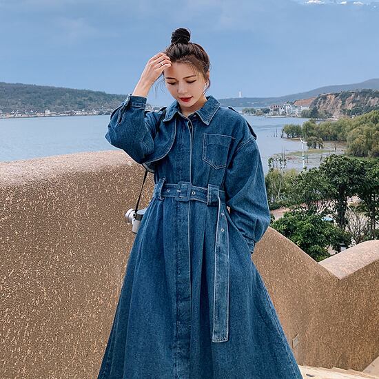 コート レディース デニム ロング丈 デニムコート レディース かわいい ハイウエスト ベルト デニム コート アウター おしゃれ 体型カバー 大きいサイズ デニムコート レディース ロング丈