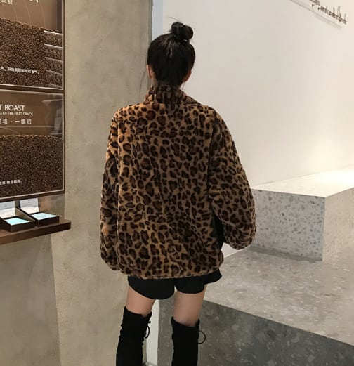 ファーコート レオパード ヒョウ柄 韓国 レディース 大きいサイズ もこもこ アウター 羽織り ジャケット アニマル柄 長袖 冬ア ウター 暖かい 秋冬物 豹柄 ブルゾン ファーコート レオパード