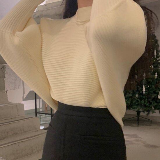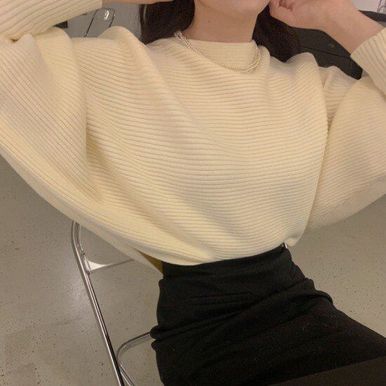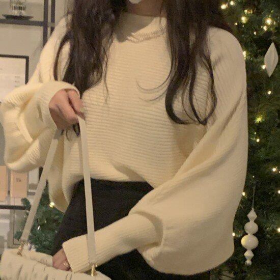 ニット 白 ラグラン ランタン袖 レディース 韓国 ファッション バルーンスリーブ モックネック ニットセーター 秋冬 トップス ショート丈 ニットトップス ボリュームスリーブ 上品 お呼ばれ 秋冬