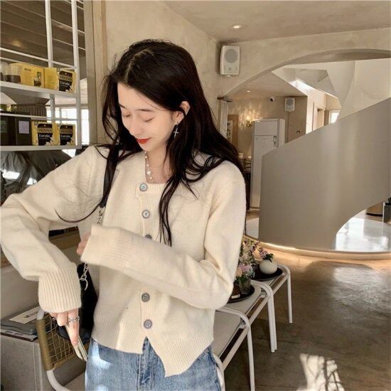 ななめのボタンがかわいい♪おしゃれニットカーディガン