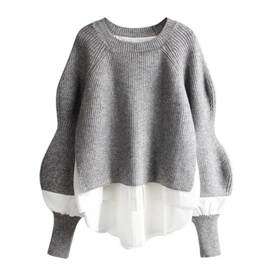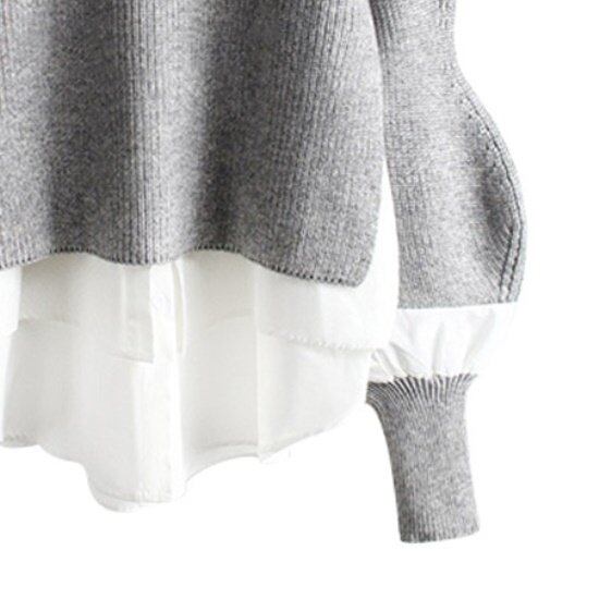 ニット 異素材ミックス ブラウス ドッキング トップス レディース 韓国 ファッション おしゃれ モード バイカラー ブラウスニット レイヤード風 ニット 異素材ミックス ブラウス ドッキング 秋冬
