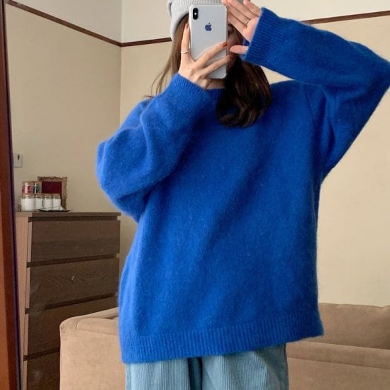 セーター ニット 長袖 プルオーバー レディース 韓国 ファッション 無地 ブルー ロイヤルブルー オーバーサイズ シンプル ベーシック オーバーサイズ ニット 長袖 プルオーバー レディース