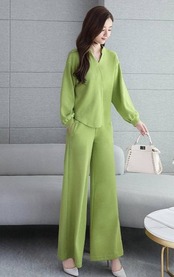 ゆったり素材のトップス&パンツ二点セット。