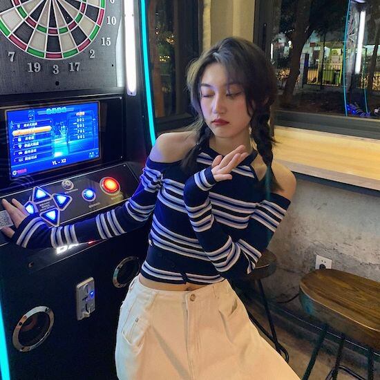 オフショルダーセーター ストライプ ショートシャツ トップス レディース セクシー 韓国 長袖 カジュアル 可愛い おしゃれ 肩出し お出かけ オフショルダーセーター ストライプ ショートシャツ