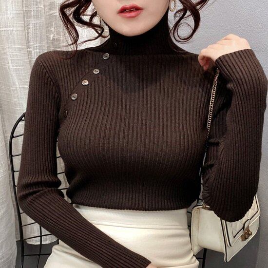 ニット レディース 長袖 ハイネック ニット レディース 長め袖 かわいい おしゃれ ニット レディース ロング丈 体型カバー 大きいサイズ ニット レディース 長袖 ハイネック ニット 長め袖