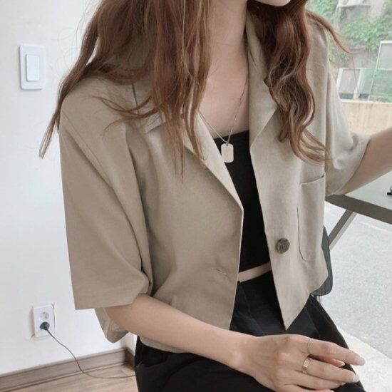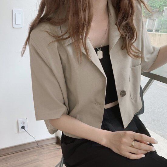 シャツジャケット ショート丈 レディース 韓国 ファッション 夏 半袖 ジャケット 無地 シンプル ショート丈 レディース 韓国 ファッション 夏 半袖 ジャケット テーラード ニュアンスカラー