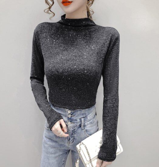 ハーフタートルネックシャツ トップス 長袖 ブラウス カットソー ハイネック レディース ナチュラル スパンコール フィット インナー スリム ハーフタートルネックシャツ トップス 長袖 ブラウス