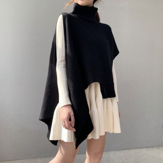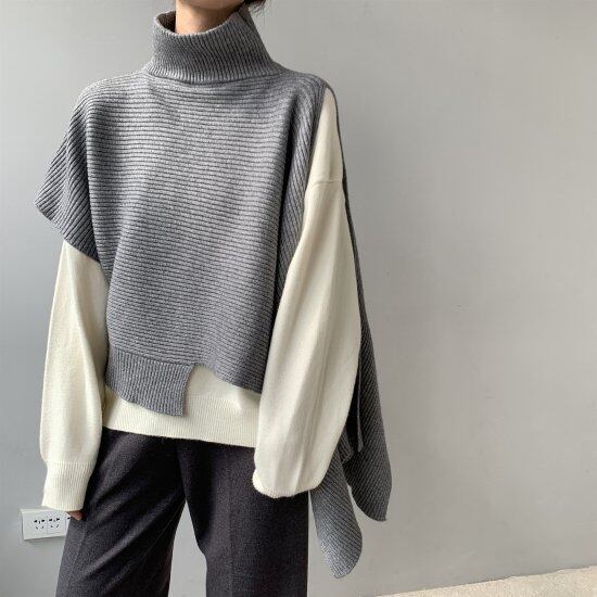 ニット トップス レディース 半袖 ノースリーブ アシンメトリー ルーズシルエット ビッグシルエット ハイネック セーター タートルネック ルーズ ベスト カジュアル ニット トップス レディース